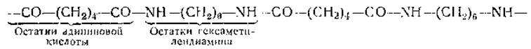 Интересно отметить, что один из главных принципов строения фиброина — наличие в пептидных цепях значительных участков, свободных от каких-либо боковых радикалов, — лежит в основе структуры такого, например, синтетического заменителя шелка, как нейлон, продукта полимеризации адипиновой кислоты и гексаметилендиамина: