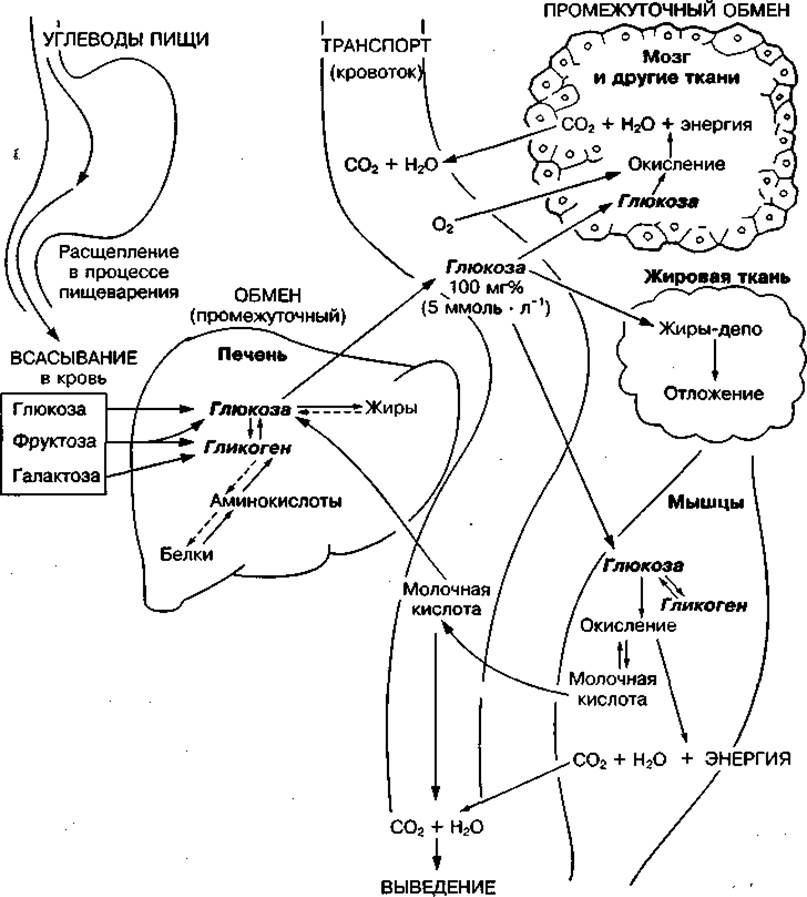 Рис. 59 Основные этапы обмена углеводов в организме человека