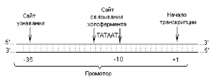 Рис. 3.1. Структура промотора E. coli (объяснения в тексте)