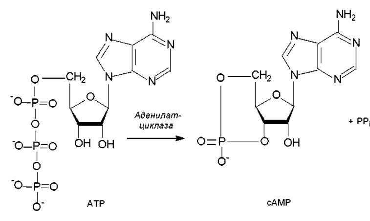Рис. 3.8 Синтез циклического АМР (сАМР) из АТР