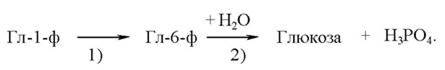 Последующее превращение глюкозо-1-фосфата в свободную глюкозу осуществляется в две стадии. На первой стадии глю- козо-1 - фосфат переходит в глюкозо-6 -фосфат; на второй стадии глюкозо-6 - фосфат гидролизуется, и образуются свободная глюкоза и фосфорная кислота: