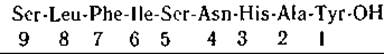 Вызывали недоумение низкие выходы аминокислот после отщепления третьего, пятого, шестого, седьмого остатков, что говорило о плохом отщеплении His (или об отсутствии его) в третьем положении. Более высокие, чем для остальных аминокислот, выходы Ser (4-й остаток) позволяли предположить, что в изучаемой области содержится более одного остатка Ser, хотя установить точное местоположение второго Ser было невозможно. В литературе [3] указывалось, что с помощью карбоксипептидаз редко удается надежно определить последовательность более трех-четырех остатков, хотя и существует большой соблазн сделать Выводы, выходящие за рамки надежной интерпретации результатов.