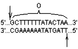 Рис. 2.7. Нуклеотидная последовательность участка «О», входящего в состав att-сайтов: стрелками показаны места надрезов уступом