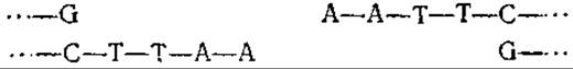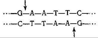 Эта рестриктаза расщепляет каждую цепь между остатками А и G по связям, отмеченным стрелками. В результате образуются два фрагмента: