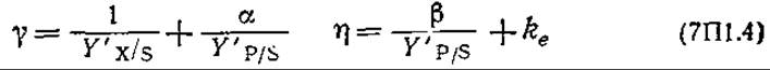 Такое уравнение скорости образования продукта метаболизма с двумя параметрами, часто называемое уравнением Льюдикина — Пайрета, оказалось чрезвычайно полезным при интерпретации экспериментальных результатов самых различных микробиологических процессов. Именно такую форму зависимости следует ожидать тогда, когда изучаемое вещество является конечным продуктом метаболического пути, связанного с выделением энергии (например, в некоторых процессах анаэробного брожения). В этих случаях первое и второе слагаемые правой части уравнения (7.93) можно рассматривать как меру энергии, расходуемой на клеточный рост и на поддержание клеток соответственно (см., например, работу [5]).