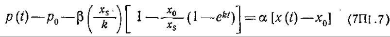 Построив график зависимости левой части уравнения (7П1.7) от [x(t)—х0], можно определить а. Аналогичным путем можно найти параметры у и η в уравнении скорости утилизации субстрата.