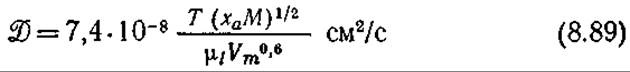 Здесь М — молекулярная масса растворителя; Vm—молекулярный объем растворителя при нормальной температуре его кипения, см3/г-моль; μl — вязкость жидкости, сП.