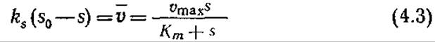 В стационарном состоянии субстрат не может аккумулироваться на поверхности катализатора, поэтому скорость поступления субстрата за счет массопередачи должна быть равна скорости его расхода в реакции на поверхности катализатора. Если допустить, что скорость м ферментативной реакции на поверхности (выраженная в молях в единицу времени на единице поверхности) подчиняется уравнению Михаэлиса — Ментен, то получим