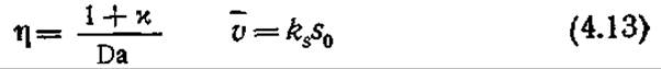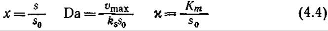Число необходимых для описания системы параметров (ks, s0, vmax и Km) можно уменьшить до двух (Da и н) путем введения следующих безразмерных переменных: