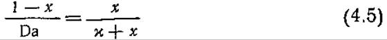 Если параметр Da близок нулю (очень медленная по сравнению с максимальной скоростью массопередачи реакция), то, согласно уравнению (4.5), х приближается к единице, и, следовательно, для лимитируемого реакцией режима (Da→O)