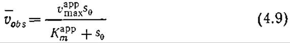 Тем не менее параметр s1/2часто называют кажущейся константой Михаэлиса (Кmaрр) и используют для оценки влияния массопередачи. Если перед исследователем стоит только задача Определения s1/2, такое упрощение может оказаться удобным, но в общем случае оно может привести к серьезным ошибкам. Например, можно прийти к выводу, что наблюдаемой скорости реакции соответствует следующее некорректное уравнение: