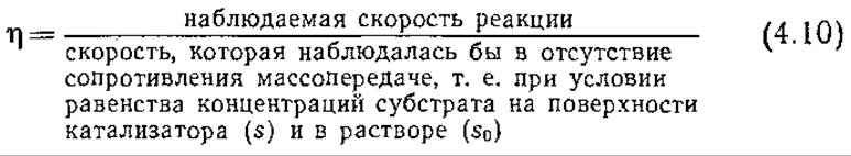 В химической технологии влияние массопередачи на общую скорость реакции традиционно выражают через коэффициент эффективности η, физический смысл которого определяется следующим образом:
