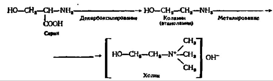 Три первых вида азотсодержащих фосфатидов, видимо, могут переходить друг в друга, так как они отличаются лишь строением азотистых оснований, между которыми возможна, например, такая генетическая связь: