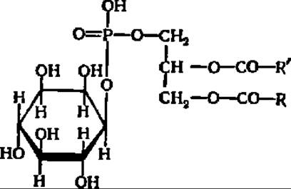 Инозитфосфолипиды (фосфоинозитиды) представляют группу фосфолипидов, Строение которой выяснено в последние 10—15 лет благодаря интенсивным работам по их химическому синтезу, осуществленным сотрудниками, принадлежащими к школам Н. А. Преображенского и Л. Д. Бергельсона. Простейший монофосфоинозитид построен так: