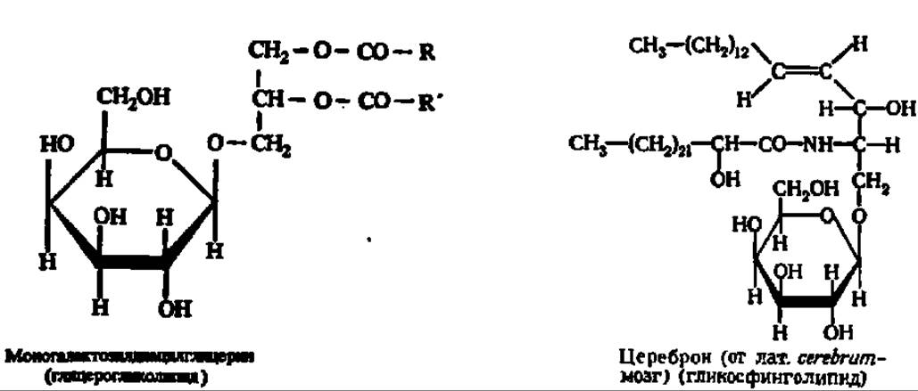 Примерами являются моногалактозилглицерин и цереброн соответственно:
