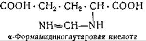Валин (СН3)2∙ СН ∙ CHNH2∙ СООН, лейцин (СН3)2 ∙ СН ∙ СН2∙ CHNH2∙ СООН и изолейцин (СН3)(С2Н5)СН ∙ CHNH2∙ СООН являются незаменимыми аминокислотами, так как их разветвленная углеродная цепь не может образовываться в организме животных [32—35]. Точно так же не могут образовываться циклические структуры тирозина и фенилаланина. При помощи дейтероаминокислот было, однако, показано, что небольшие количества тирозина могут образовываться в организме из фенилаланина [111]. Тирозин и фенилаланин являются незаменимыми предшественниками адреналина и гормона шитовидной железы. Тирозин, повидимому, необходим для созревания ретикулоцитов [112], которое зависит от галлахрома, производного индола, образующегося, в свою очередь, из тирозина. Другие индолпроизводные образуются из триптофана, который является также предшественником никотиновой кислоты или никотинамида [113]. Гистидин незаменим для собак и крыс, но может синтезироваться в организме человека. Путь образования имидазольного кольца в организме до сих пор неизвестен; возможно, что предшественником его является формамидиноглутаровая кислота, которая образуется из гистидина при действии гистидазы [114]: