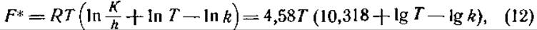 где К — постоянная Больтцмана (1,38 ∙ 10-16 эрг/град), h — постоянная Планка (6,62 ∙ 10-27 эрг/сек) и k — постоянная скорости в 1 сек. Если F* известно, то S* можно определить из уравнения (13):