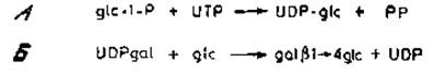 Рис. 3.3. Биосинтез нуклеотидсахара и дисахарида лактозы.