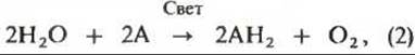 Ключ к ответу на этот вопрос был получен в 1937 г. в Кембриджском университете Робертом Хиллом, внесшим большой вклад в изучение фотосинтеза. Он нашел, что если добавить к листовым экстрактам, содержащим Хлоропласты, какой-нибудь небиологический акцептор водорода, а затем осветить эти препараты, то они будут выделять кислород и одновременно в них будет происходить восстановление акцептора водорода согласно уравнению