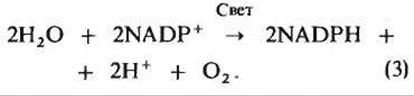 Далее начались поиски природного биологически активного аналога реагента Хилла, т. е. того акцептора электронов, который присутствует в хлоропластах и присоединяет водородные атомы, отщепляемые на свету от воды. Спустя несколько лет выяснилось, что роль этого природного биологического акцептора электронов играет в хлоропластах NADP+. Реакция описывается уравнением