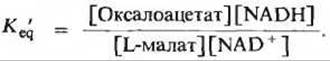 б) Поскольку величина ∆G0' относится к стандартному значению pH, т.е. pH 7, Константа равновесия, вычисленная, как в п. «а», равна