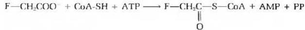 10. Механизм действия фторацетата, применяемого в качестве родентицида Препарат фторацетата, изготовляемого промышленным способом, применяется как средство борьбы с грызунами. В природе фторацетат обнаружен в одном из южноафриканских растений. Проникнув в Клетки, он превращается во фторацетил-СоА в реакции, катализируемой ферментом ацетаттиокиназой