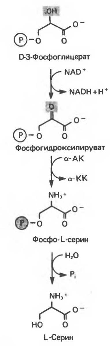 Рис. 29.5. Биосинтез серина. а-АК — а-аминокислота, аКК — а-кетокислота.