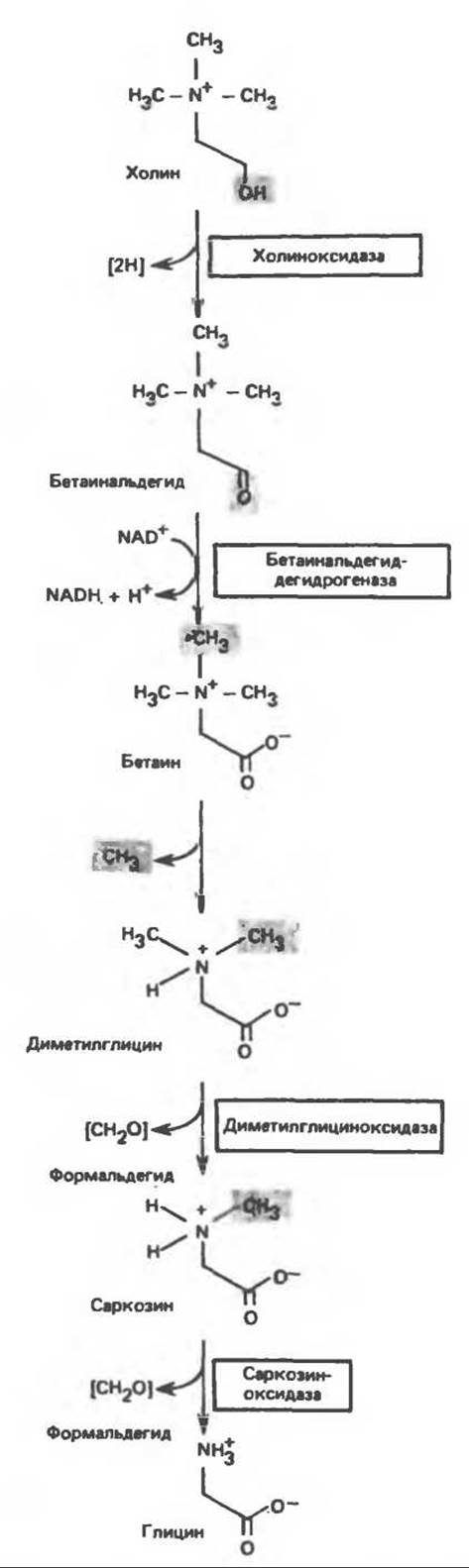 Рис. 29.6. Образование глицина из холина.