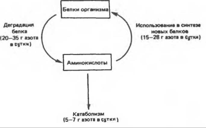 Рис. 30.1. Количественные соотношения при обновлении белков и аминокислот.