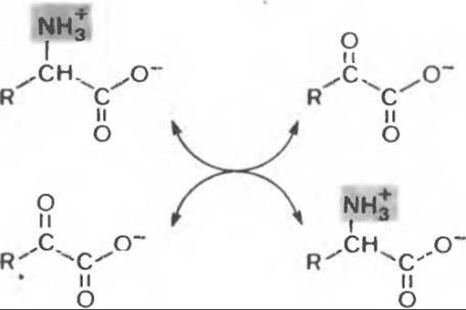 Переаминирование, катализируемое ферментами трансаминазами (аминотрансферазами), представляет собой взаимопревращение пары аминокислот и пары кетокислот. Обычно это а-Аминокислоты и а-кетокислоты (рис. 30.3).