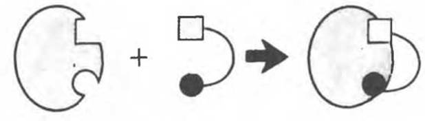 Рис. 8.7. Схематическое представление конформационных изменений в молекуле фермента при связывании субстрата согласно модели индуцированного соответствия. Обратите внимание на расположение ключевых остатков до и после связывания субстрата (по Кошланду).