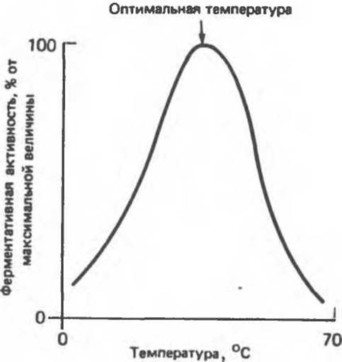 Для большинства ферментов оптимальная температура равна или выше той температуры, при которой в норме находятся Клетки. Для ферментов микроорганизмов, адаптировавшихся к обитанию в природных горячих источниках, оптимальная температура может быть близка к точке кипения воды.