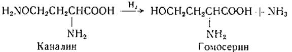 При каталитическом восстановлении каналин распадается на аммиак и гомосерин: