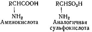Одними из первых синтетических антагонистов аминокислот явились аналогичные им сульфоновые кислоты. Многие из этих производных, в том числе сульфозамещенные аналоги глицина, валина, лейцина, фенилаланина и аланина, обладают бактериостатическим действием. Оно, как правило, снимается природным аналогом и нередко другими аминокислотами [167].