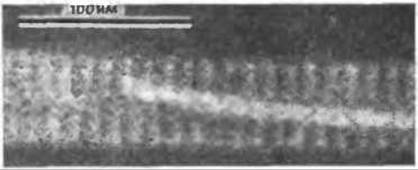 Микрофотография концевой части бактериального жгутика внутри чехла (негативное контрастирование фосфовольфрамовой кислотой). Жгутик принадлежит неидентифицированной бактерии, обнаруженной в пруду. Назначение неплотно прилегающего чехла неясно. (С любезного разрешения F. D. Williams.)