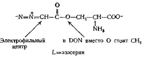 Перенос азота с глутамина на другие субстраты рассматривается в обзоре Бьюкенена [26]. При изучении этих процессов были использованы различные аналоги глутамина, относящиеся к антибиотикам; например L-азасерин и 6-диазо-5-оксо-L-норлейцин (DON) — Антибиотики, выделенные из стрептомицетов: