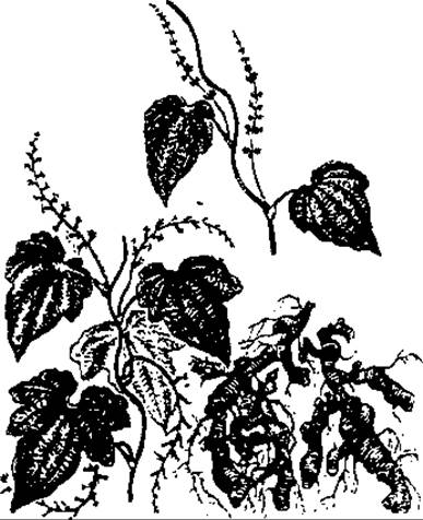 Рослина. Дводомна багаторічна трав’яниста ліана завдовжки до 4 м з витким стеблом і товстим горизонтальним, розгалуженим, бугристим кореневищем завдовжки да 20 см, завтовшки від 0,5 до 4 см. Має перекручені або злегка зігнуті циліндричні короткі і товсті відгалуження. Поверхня поздовжньотріщинувата, жовтувато-брунатного кольору. Корені тонкі, пружні, завдовжки до 30 см, завтовшки 0,5—1 мм. Листки чергові, черешкові, широкояйцеподібні, з серцевидною основою, семилопатеві, з найбільшою середньою лопаттю, верхні листки — трьох-, п’ятилопатеві. Квітки одностатеві, дводомні, зеленкуваті. Тичинкові квітки звичайно зібрані по три-сім у напівзонтик, що утворює прості, рідше гілчасті пазушні китиці; маточкові квітки зібрані у просту китицю. Плід — трьохгніздова коробочка.