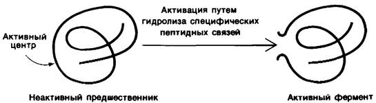 Рис. 6.4. Активация профермента путем гидролиза специфических пептидных связей