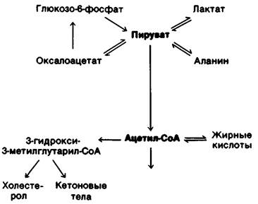 Рис. 23.11. Метаболические превращения пирувата и ацетил-СоА