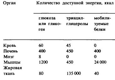 Таблица 23.1. Энергетические ресурсы у среднего мужчины весом 70 кг