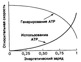Рис. 11.15. Влияние энергетического заряда на относительную скорость типичного генерирующего АТР (катаболического) пути и типичного использующего АТР (анаболического) пути