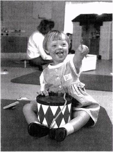 Рис. 25.27. Девочка с характерными признаками синдрома Дауна; слегка косящие глаза, круглая ГОЛОВА и плоская переносица.