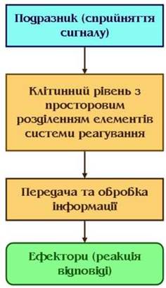 3. Узагальнена схема реагування на зовнішні впливи. Ускладнення механізмів реагування.