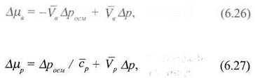 Таким чином, зміни хімічних потенціалів Δμв, та Δμр, які є рушійними силами процесу, подані як функції тих самих різниць тисків Δросм та Δр.