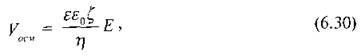 де ε - діелектрична проникність середовища (для води 80), εд — діелектрична проникність вакууму (8,85 · 10-12 Кл·В-1·м-1), С - електрокінетичний потенціал, який являє собою різницю потенціалів між нерухомими та рухомими зарядами і становить від кількох одиниць до десятків мілівольт, η - в'язкість, Е - напруженість електричного поля (В·м-2).