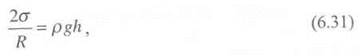 де ρ - густина рідини, R - радіус кривизни меніска, g - прискорення вільного падіння, h - висота, на яку підіймається рідина. Звідси можна визначити висоту піднімання рідини: