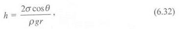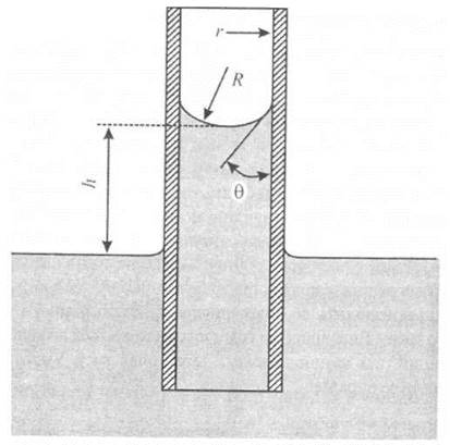 Рис. 6.18. Величини, необхідні для розгляду капілярного підіймання води.