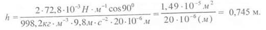 Розглянемо на конкретному прикладі судину ксилеми радіусом 20 мкм: згідно з формулою (6.32) вода в судині підійметься на висоту: