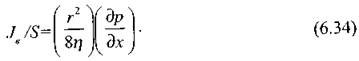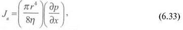 Якщо середній потік води в ксилемі становить 10-3 м·с-1, коефіцієнт в’язкості води η = 10-3 Па·с, а радіус ксилеми r = 20 мкм = 2·105 м, то градієнт тиску, що задовольняє рівняння (6.33), становитиме = -2·104 Н·м3 = -2·104 Па·м-1.