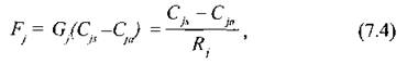 де Gj - провідність (моль·м2·с-1), Rj - опір (м2·с·моль-1). У випадку, коли дифузія відбувається в одному напрямку, Gj = ρDJ/Δz, де Δz - відстань між джерелом речовини до точки, в якій концентрація становить Сj.